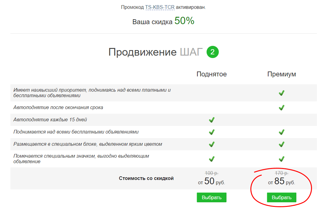 Внимательно прочтите условия продвижения в таблице ниже и выберите тип продвижения, нажав на соответствующую кнопку в одном из столбцов таблицы.